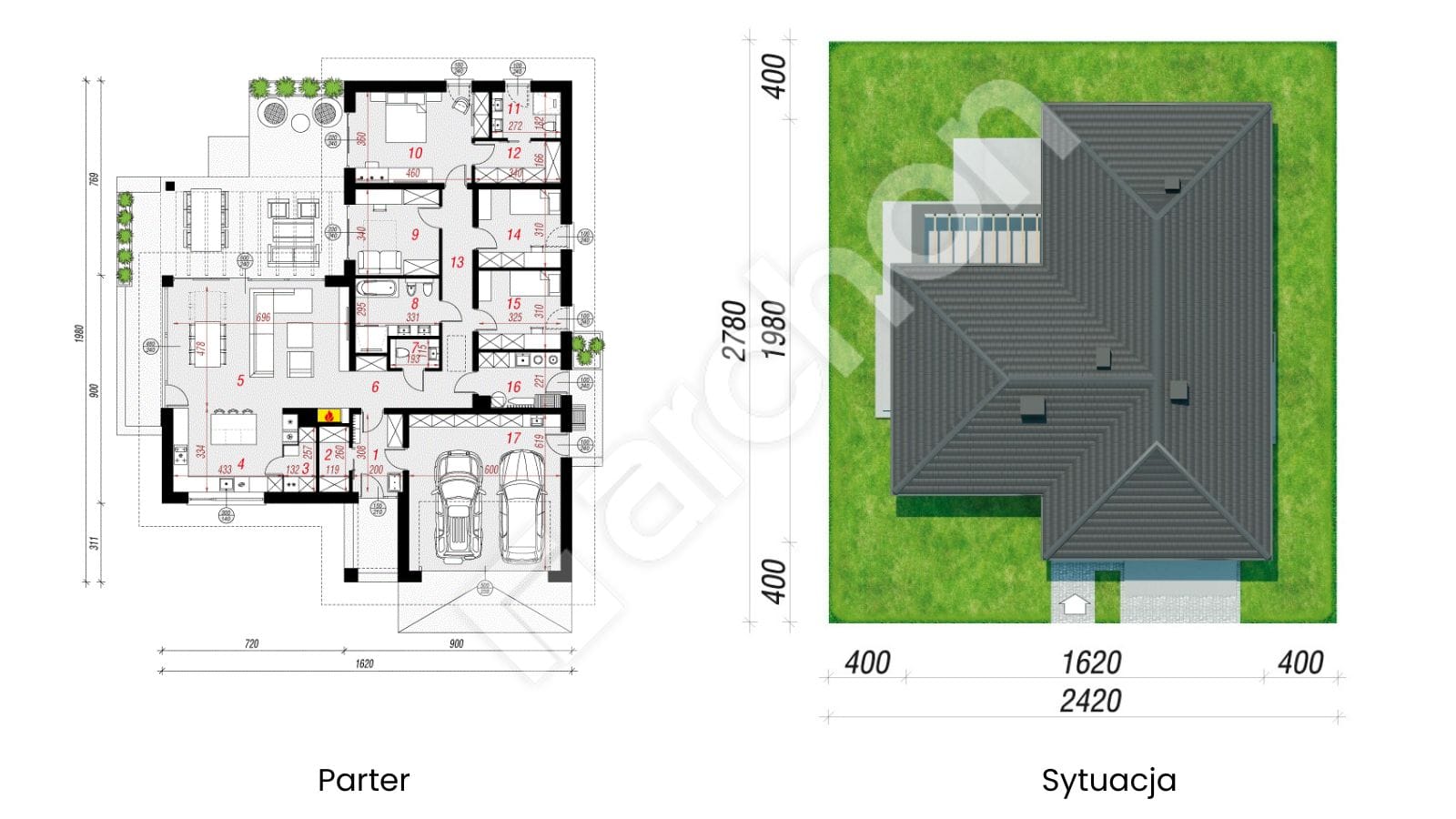 - taras z pergolą dostępny z części dziennej i nocnej – idealne miejsce rodzinnego wypoczynku na świeżym powietrzu.